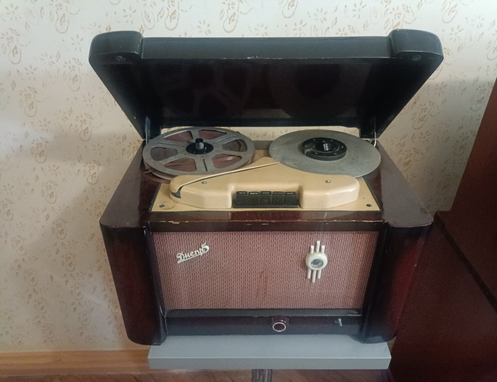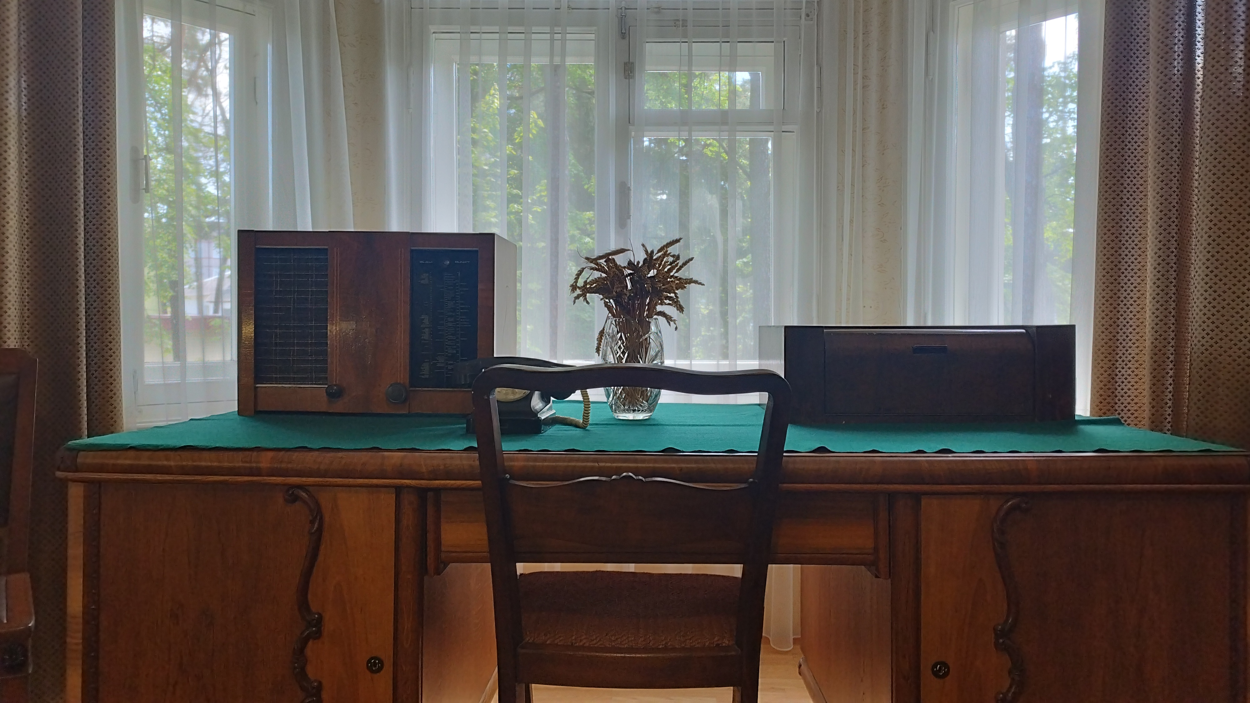 У пакоі Данілы Канстанцінавіча таксама быў трафейны прайгравальнік фірмы Grawor. У экспазіцыі прадстаўлены і пасляваенныя радыёпрыёмнікі, такія як “Дняпро-5” 1955 года, што выпускаўся ў Кіеве, запісваў, прайграваў і дазваляў сціраць аўдыя. Лямпавы прыёмнік “Беларусь-53”, які выраблялі ў Мінску з 1953-га, называлі дырэктарскім — не толькі праз тое, што такі часта можна было пабачыць у кабінетах кіраўніцтва, але і праз характэрны дыяганальны надпіс “Беларусь” на корпусе. Падобны лагатып сапраўды нагадваў рэзалюцыю на афіцыйным дакуменце.