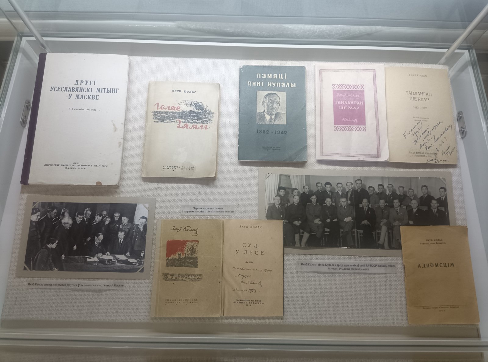 Куратар выставы Алена Жасткова падкрэслівае, што гэта быў толькі пачатак жудасных страт, прынесеных Якубу Коласу ліхалеццем. У чэрвені 1942-га ў Маскве трагічна загінуў лепшы сябар паэта Янка Купала, а ў маі 1945-га радасць ад Перамогі была азмрочана смерцю жонкі Марыі Міцкевіч. Тым не менш жыццё працягвалася.