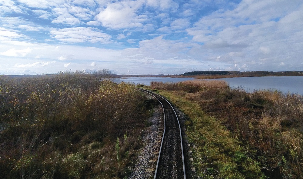Гудок, састаў кранаецца — і неўзабаве віды заводскай тэрыторыі за вокнамі змяняюцца маляўнічымі даляглядамі. То бясконцае ворыва, то змешаны лес і бярэзнічак, то зноў абшары зямлі са старымі самотнымі хутарамі. Нарэшце цягнік выпаўзае на бясконцыя чорныя палі, на якіх ззяюць аранжавыя машыны для здабычы торфу. Па дарозе спыняемся на раз’ездзе, каб прапусціць сустрэчны грузавы састаў. Праз нейкі час перамяшчаемся паўз вялізныя разлівы — паўторна затопленыя распрацоўкі. На іх ужо скончылі здабычу пароды, і цяпер гэта сапраўдны рай для вадаплаўных птушак і ўлюбёнае месца для промыслу рыбакоў з усіх ваколіц. Едзем павольна — цягнік набірае хуткасць, не большую чым 25 кіламетраў за гадзіну, таму часу палюбавацца краявідамі і зрабіць фота на памяць дастаткова. І нашы маленькія спадарожнікі не прапускаюць такую магчымасць.