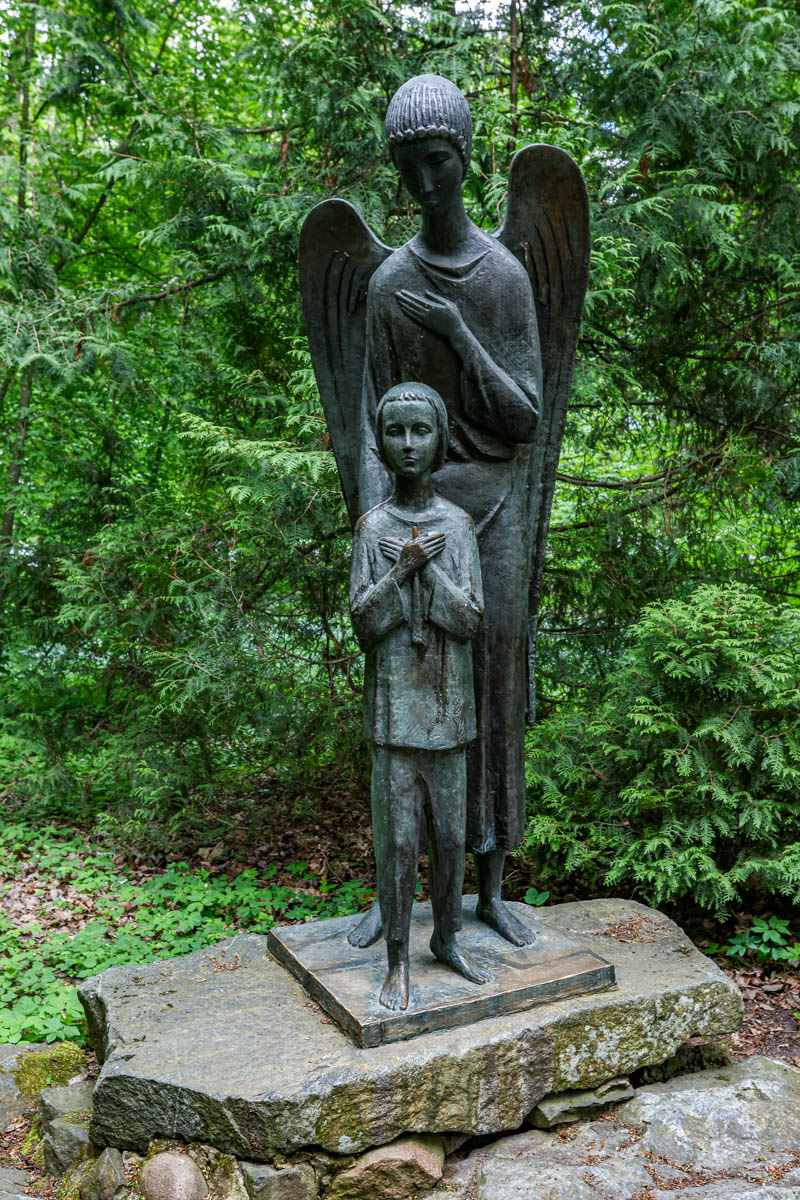 У парку мноства скульптур. Напрыклад, “Музыка і анёл” паводле паэмы Якуба Коласа “Сымон-музыка”, “Русалка”.