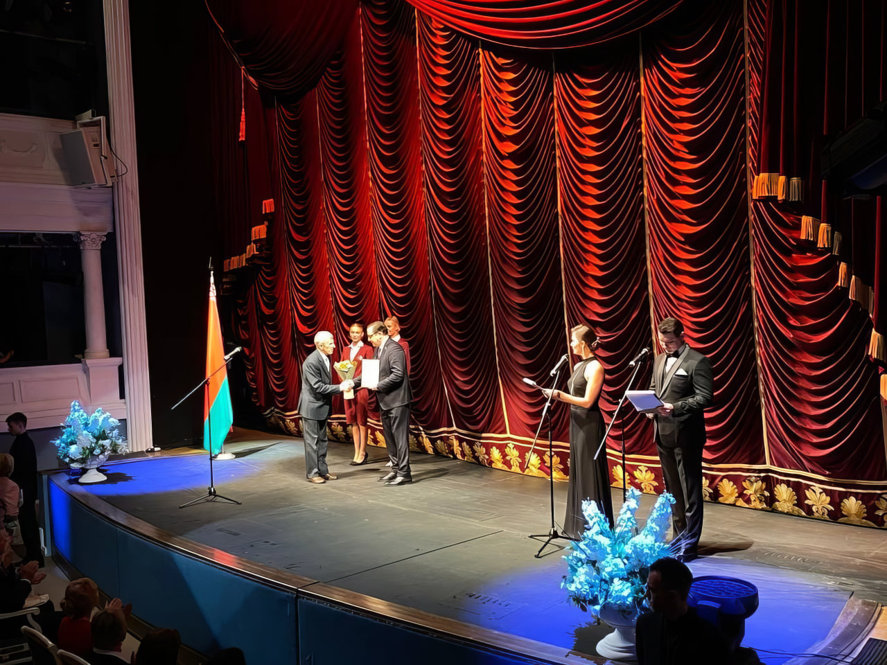 Святочная атмасфера панавала ўсюды: у фае тэатра і яго калідорах, каміннай і глядацкай залах. Сустрэчы калег і аднадумцаў былі надзвычай шчырымі і кранальнымі, ім было што абмеркаваць і чым падзяліцца паміж сабой, а яшчэ — павіншаваць з прафесійным святам і ўзнагародамі.
