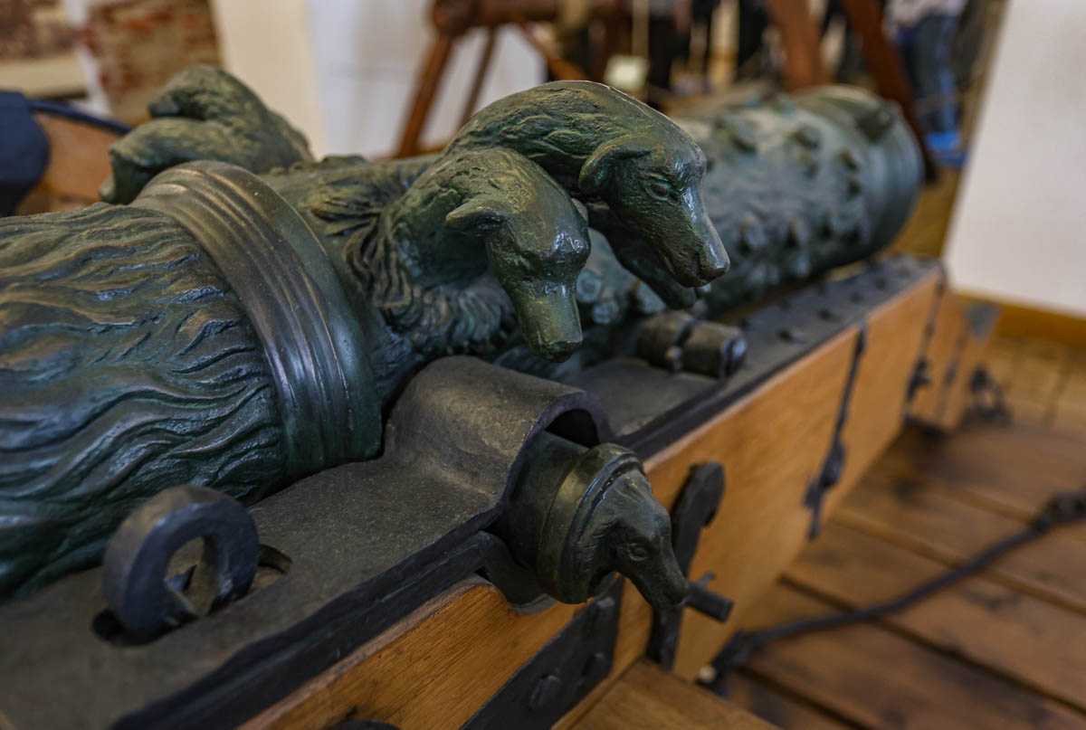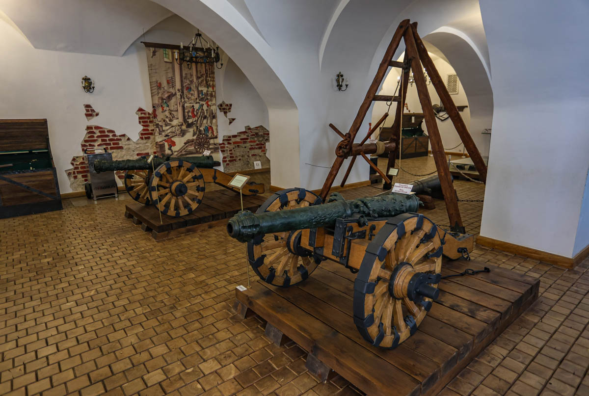 Уздоўж сцен цэйхгаўза на спецыяльных падстаўках размяшчалася ручная агняпальная зброя, у цэнтры на лафетах стаялі гарматы. Тут жа захоўваліся ядры, порах, асобныя часткі рознай зброі.