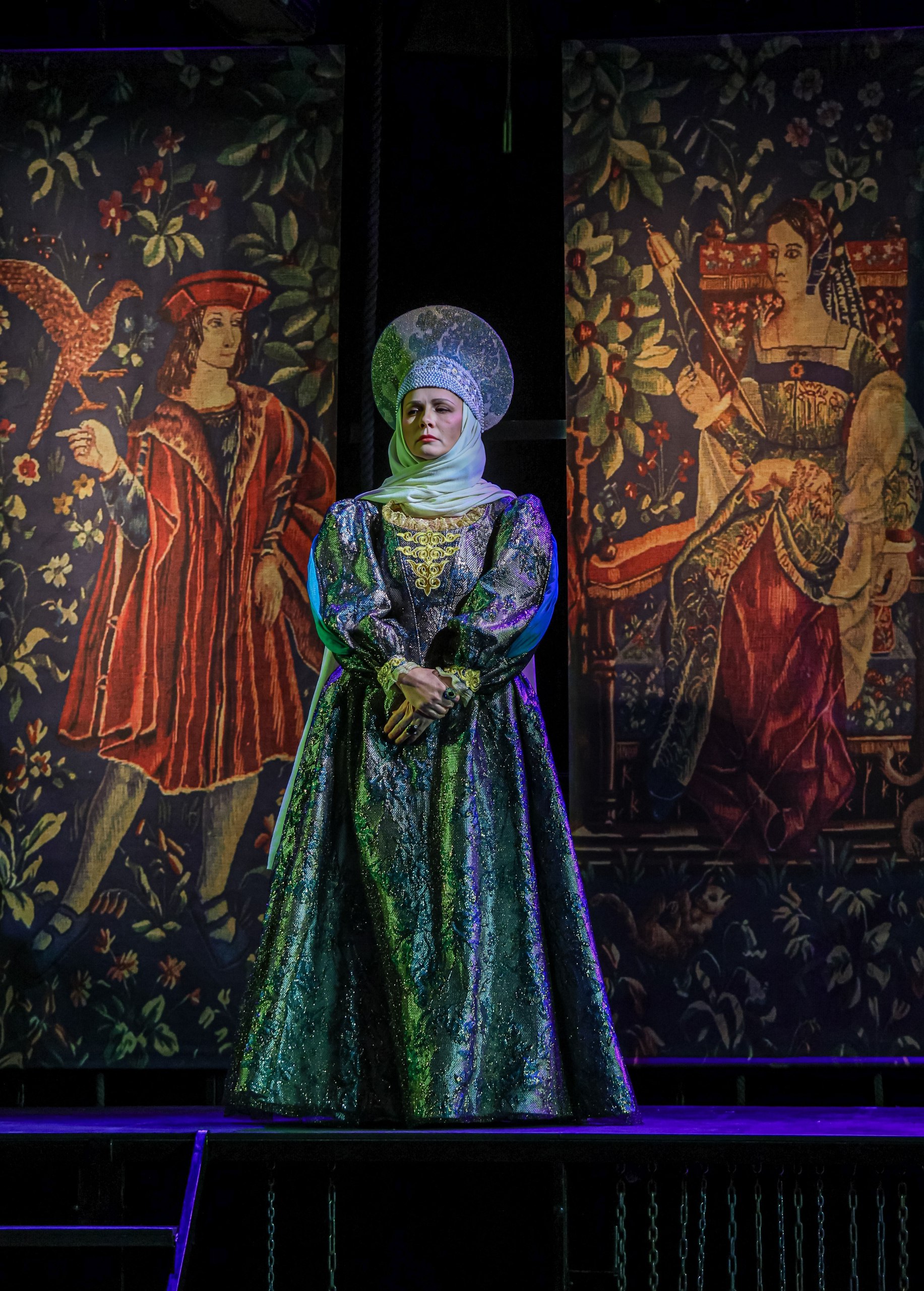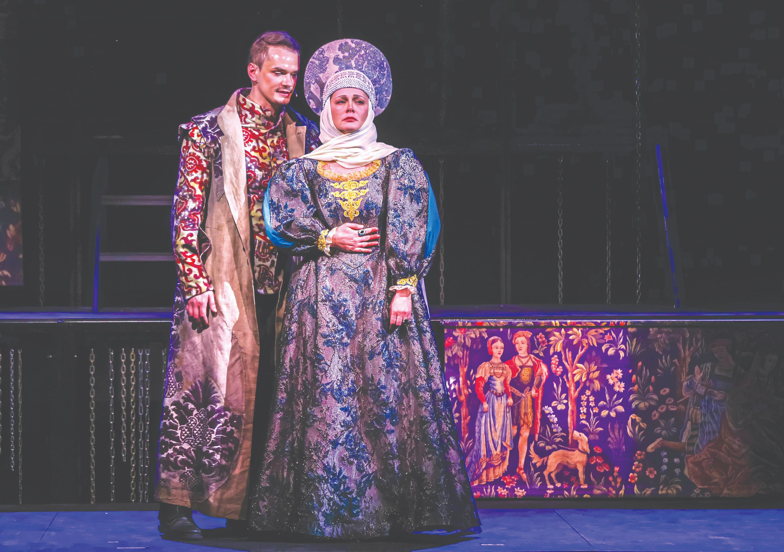 Духоўны суд, азначаны ў пісьменніка ўсяго трыма сказамі, узрастае тут да працяглай сцэны — нават больш разгорнутай, чым сустрэча Гервасія Вылівахі (Алесь Ніканенка) з каралевай Бонай Сфорцай (Наталія Саламаха ці Наталля Халадовіч). Абвінавачанні героя ў разбэшчанасці вырашаны парадыйна і нагадваюць гісторыі з “Дэкамерона” Бакача пра маладых жонак, што весела абдурваюць старых мужоў з палюбоўнікамі. Рагатыя шлемы маюць падвойнае тлумачэнне: перад намі і раганосцы, і камічна ваяўнічыя “вікінгі”, як іх малююць у сучаснай масавай культуры (насамрэч такія шлемы — усяго толькі міф, народжаны ў операх Р. Вагнера і замацаваны ў кіно). Заўважныя і спасылкі на жыццялюбства “Карміны Бурана” К. Орфа, створанай паводле сярэднявечных вершаў з аднайменнага зборніка. Нават Смерць (прыгажуня Вераніка Буслаева) тут падобная не да жудаснай старой у чорным, а да вытанчанай алебастравай статуі старадаўніх рымлян (мастак па касцюмах — Таццяна Лісавенка). Некаторыя эстэтычныя паралелі, асабліва ў другой дзеі, ёсць і з названай раней анімацыйнай стужкай, і з тэатрам ценяў, кінастылем нуар, выяўленчай тэхнікай к’яраскура (святлацень ужываецца для перадачы трохмернасці малюнка).