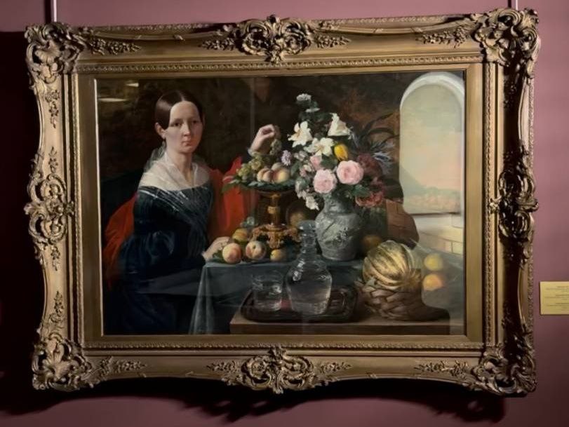 У лютаўскім нумары часопіса мы размясцілі карціну «Партрэт невядомай з кветкамі і садавіной» пэндзля Івана Хруцкага (1838 г.).