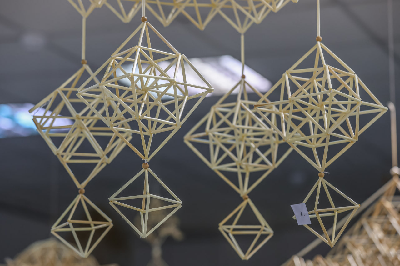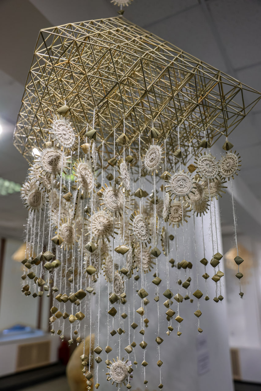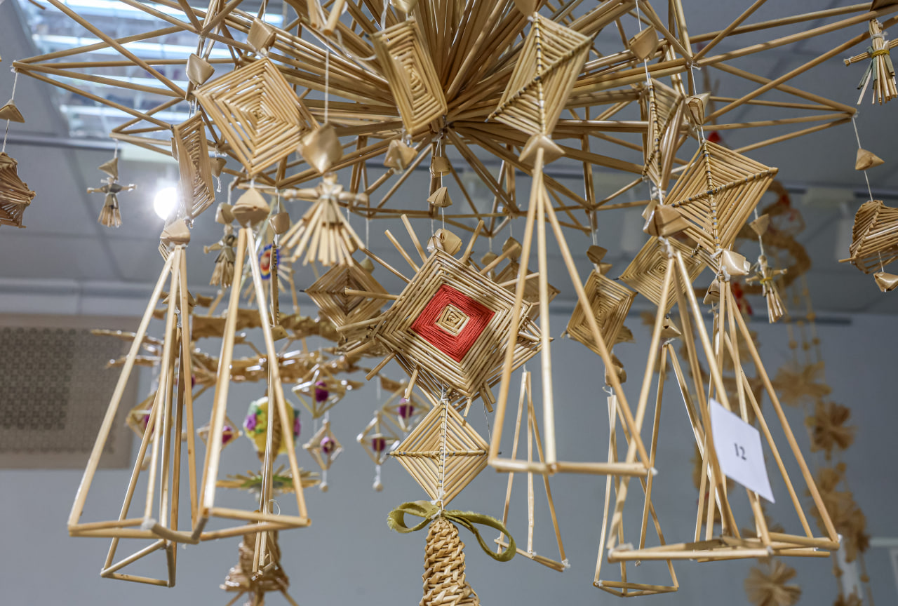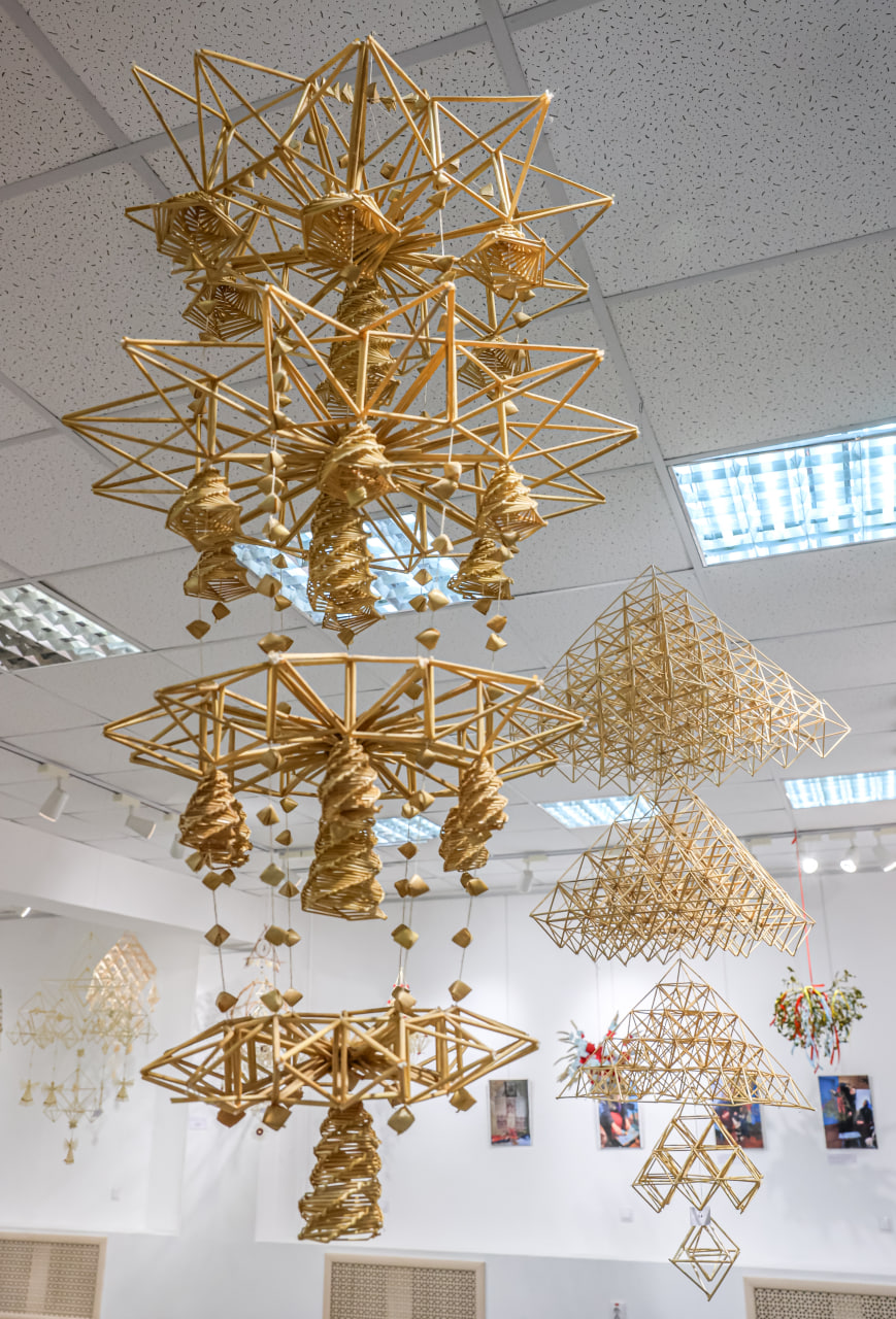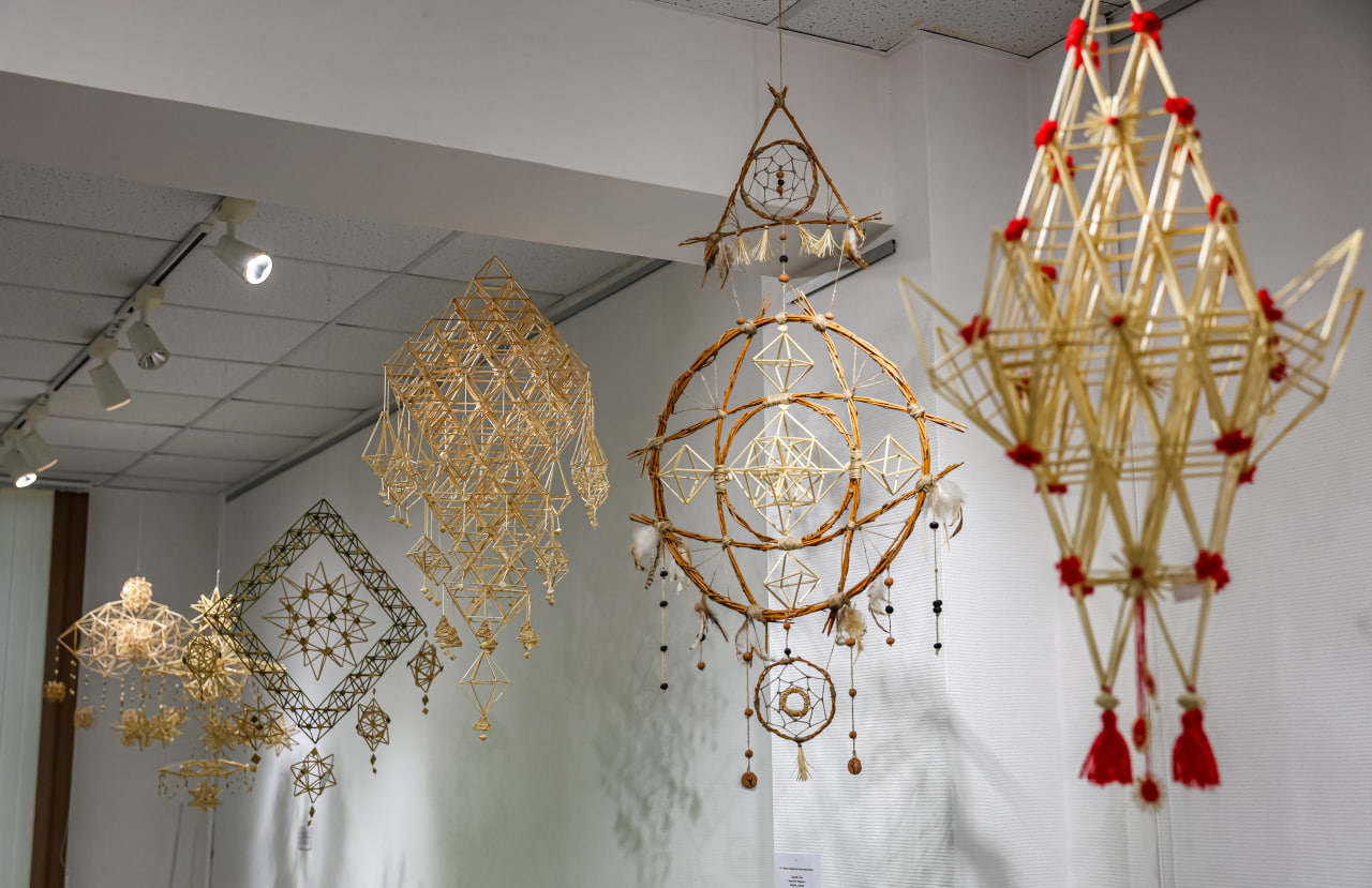 У мастацкай галерэі Мінскага абласнога цэнтра народнай творчасці прайшла выстава "Павучок ідзе — шчасце вядзе", на якой можна пабачыць беларускія саламяныя абярэгі.