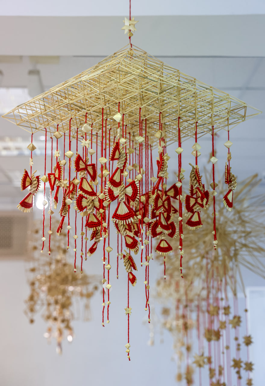 Зазвычай гэтыя кампазіцыі з саломы і паперы, якія мелі форму ромба, піраміды альбо зоркі, падвешвалі да столі, дзе яны маглі свабодна рухацца вакол сваёй восі. Аздаблялі іх зернем, пер’ем, фольгай.