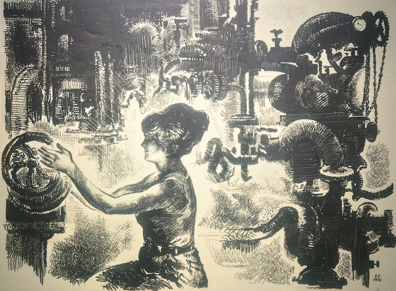 Пасляваеннай адбудове краіны прысвечаныя серыя “Будаўнікі Мінска” і творы, што паказваюць будні рабочых Магілёва ды Салігорска.